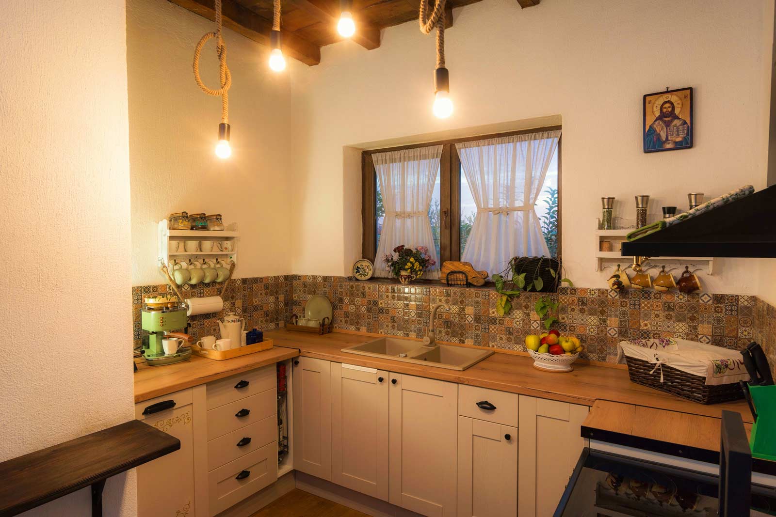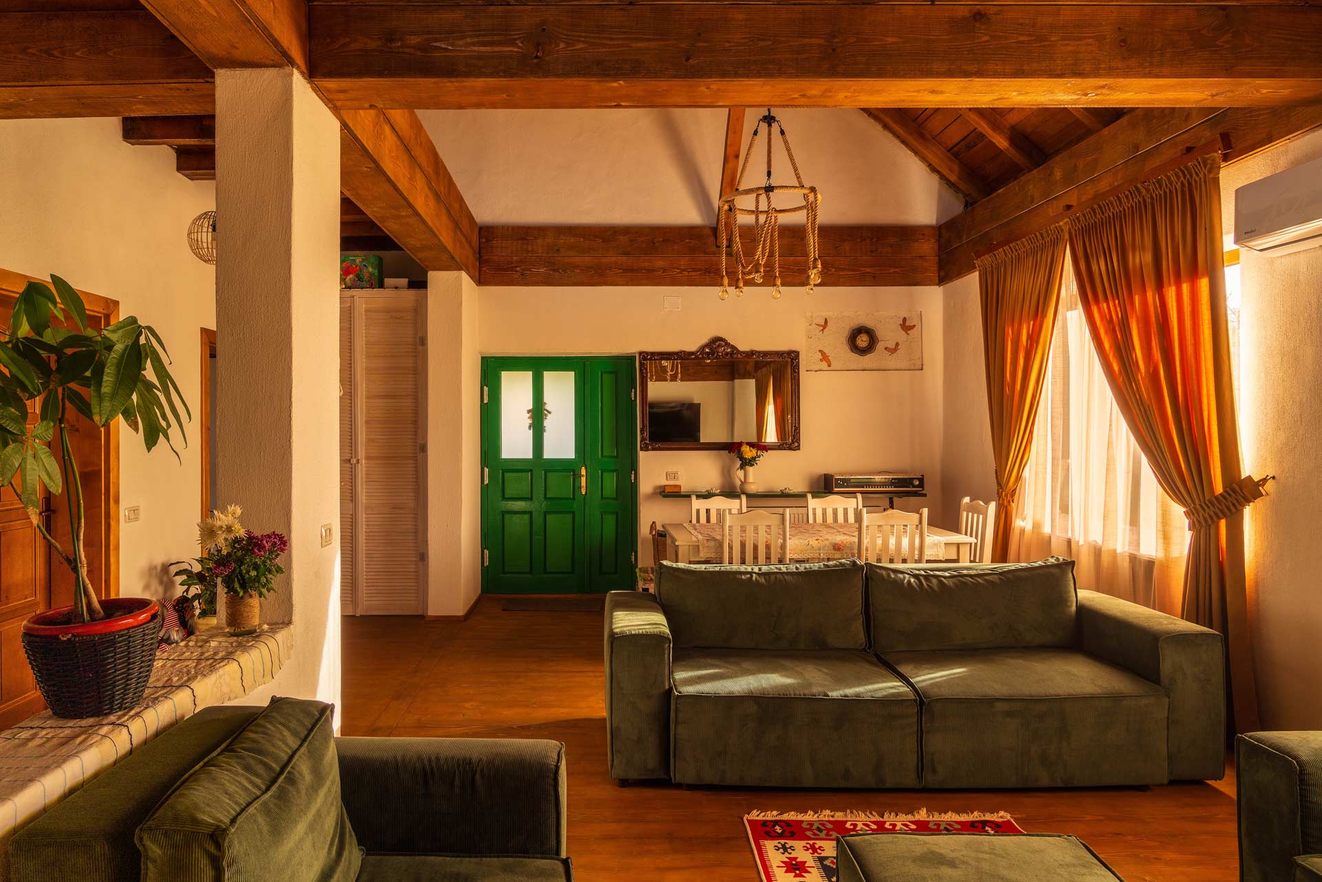 Casa din Grădina adăpostește 3 camere duble, fiecare cu baie proprie, un living spațios încărcat de energii pozitive, prin prisma materialelor naturale folosite că parte importantă din ecosistemul natural, lemnul și pământul aduc negreșit o bucată de natură acolo unde este folosit. Bucătăria este utilată așa cum trebuie pentru prepararea mesei și păstrarea alimentelor la rece.