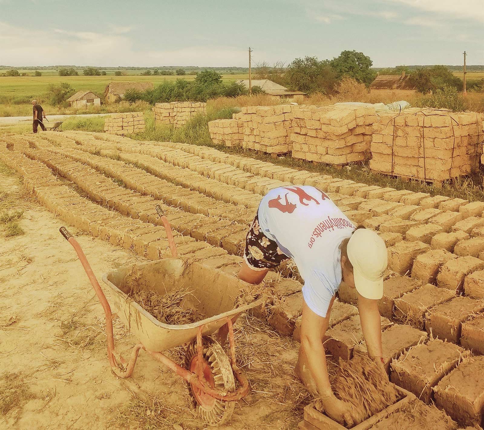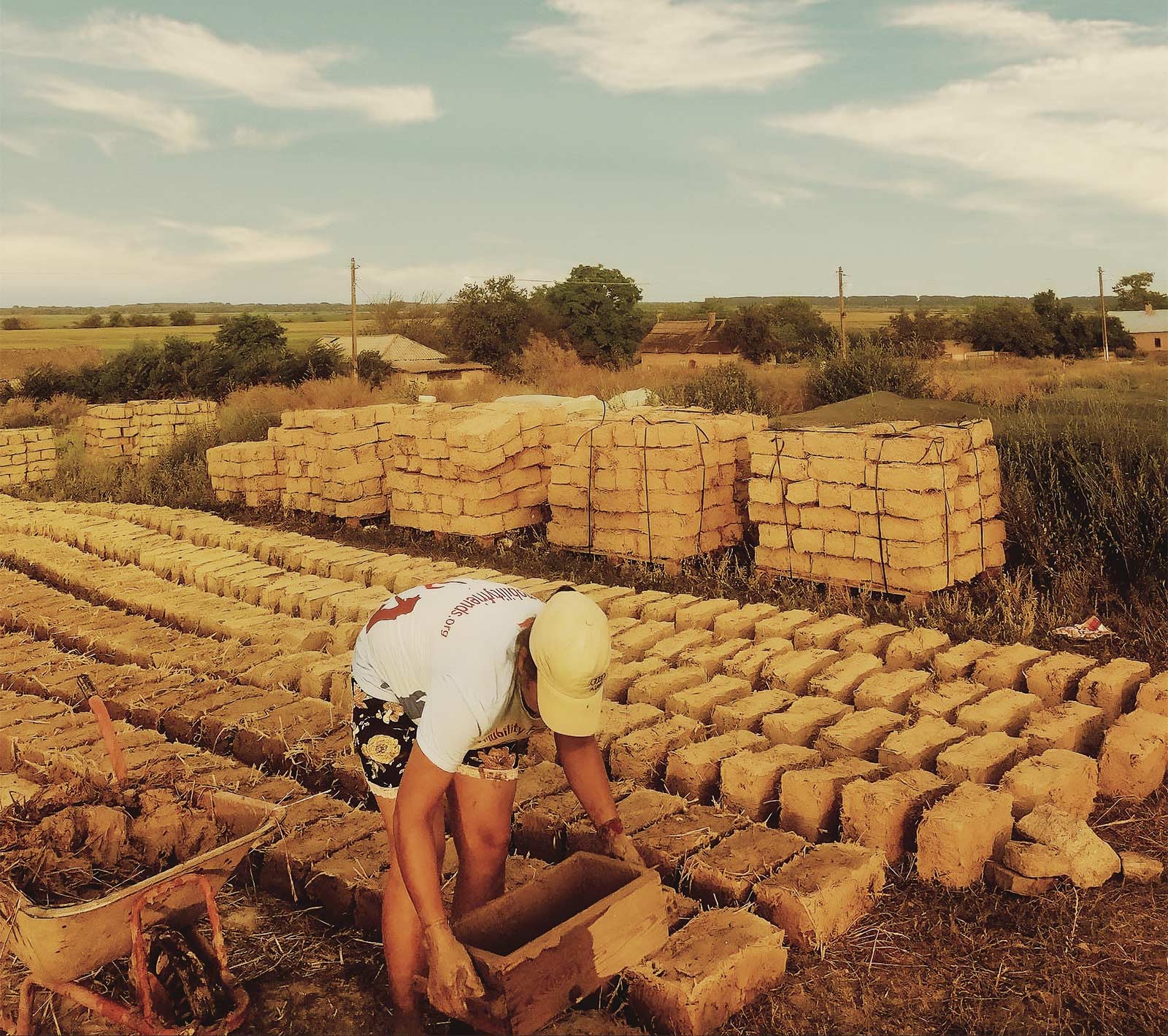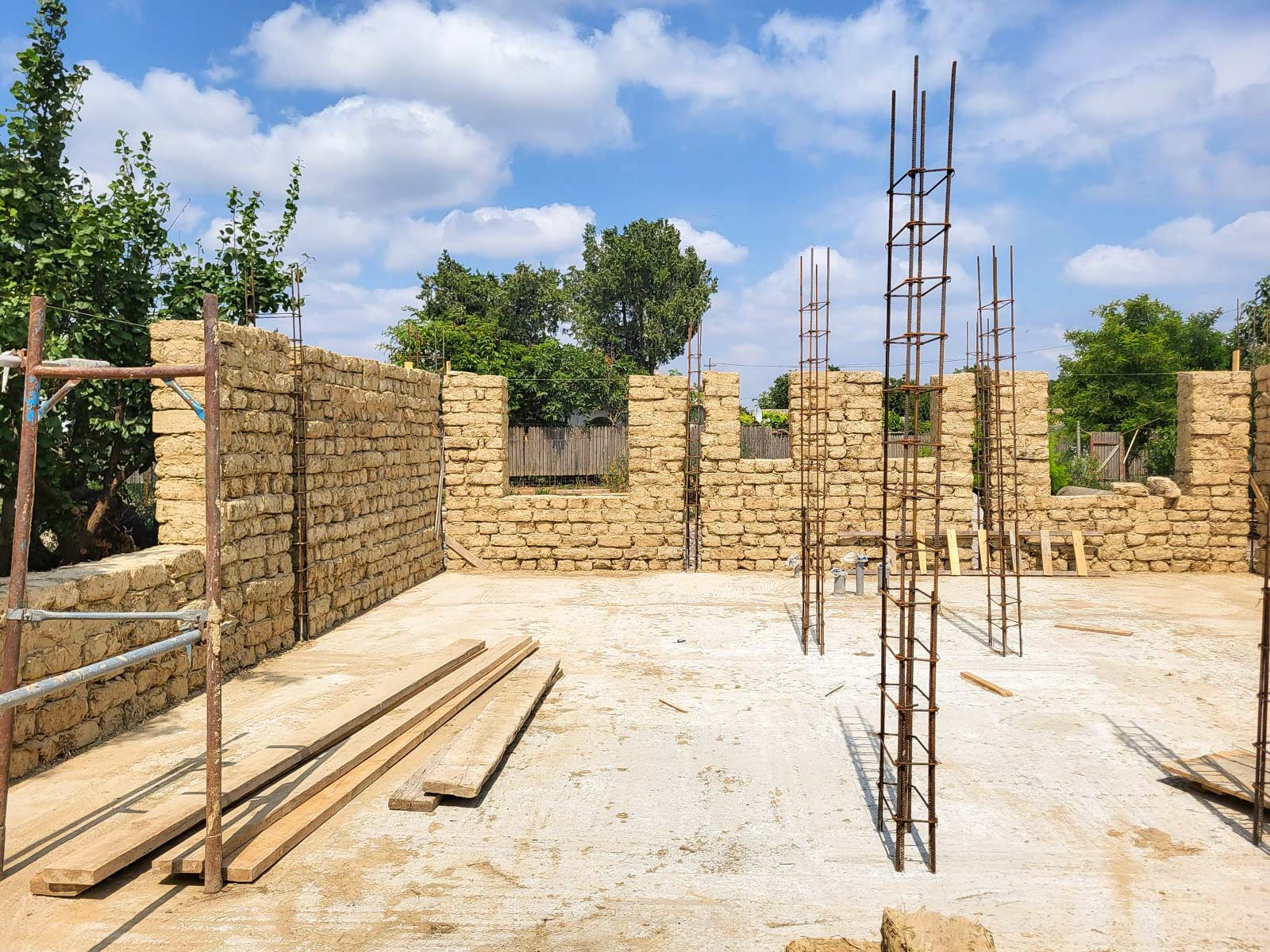 Casa din Gradina a fost ridicata cu ajutorul meseriasilor locali si este construita in totaliate din chirpici, acel amestec din pamant galben, paie si apa, asezat cu grija in chirpicarii din lemn si uscat la soare. Ne-am folosit de resursele naturale din zona, inclusiv stuful care a imbracat-o, taiat si recoltat din baltile locale care formeaza lacul Razelm ce margineste satul nostru Sabangia din comuna Sarichioi.