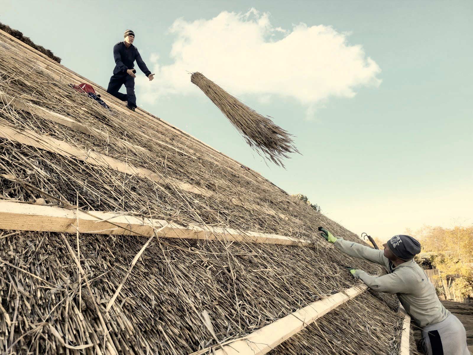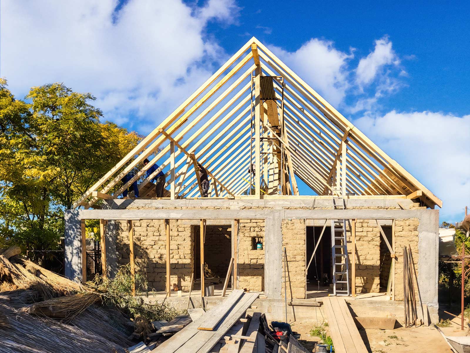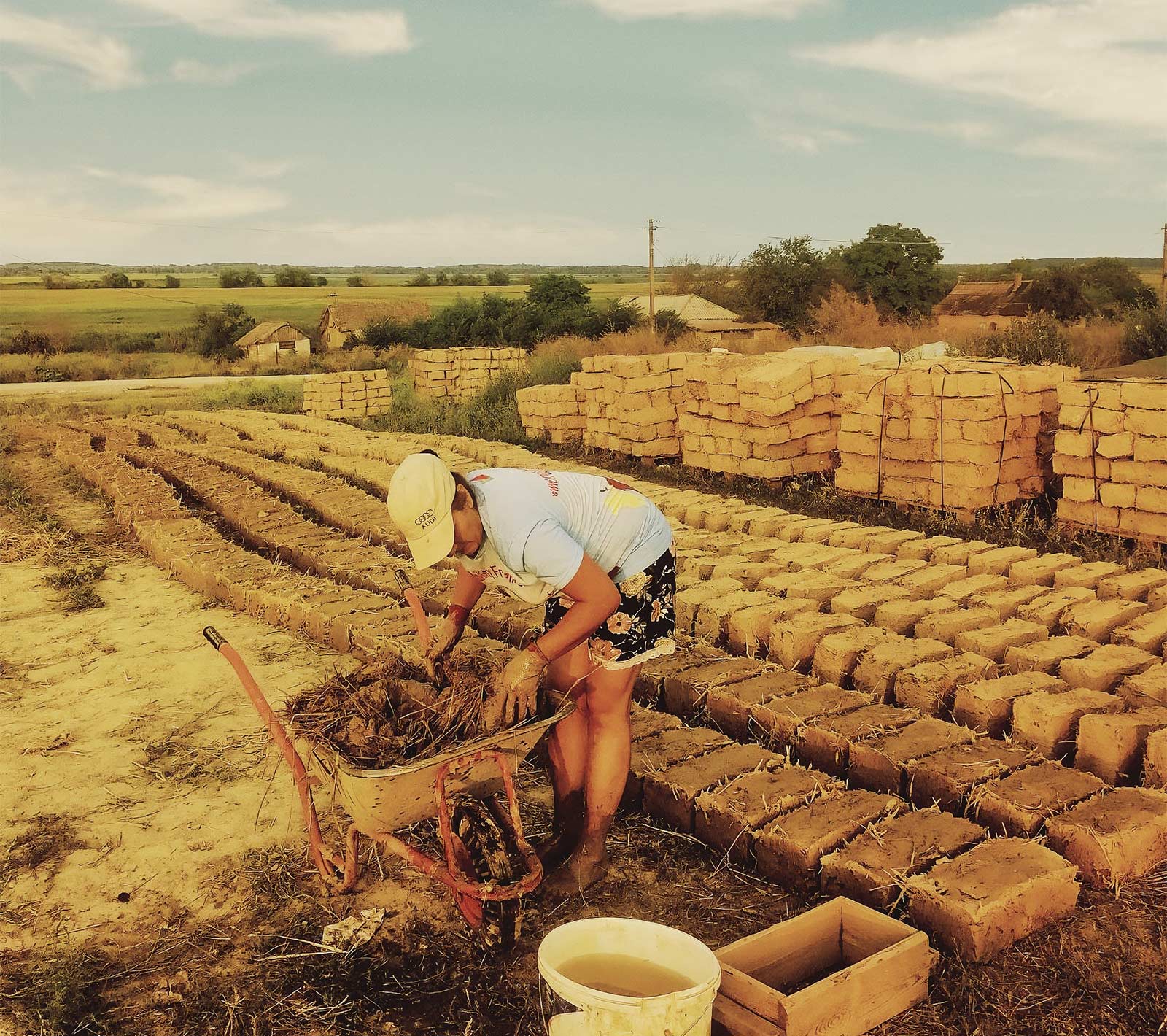 Casa din Gradina a fost ridicata cu ajutorul meseriasilor locali si este construita in totaliate din chirpici, acel amestec din pamant galben, paie si apa, asezat cu grija in chirpicarii din lemn si uscat la soare. Ne-am folosit de resursele naturale din zona, inclusiv stuful care a imbracat-o, taiat si recoltat din baltile locale care formeaza lacul Razelm ce margineste satul nostru Sabangia din comuna Sarichioi.